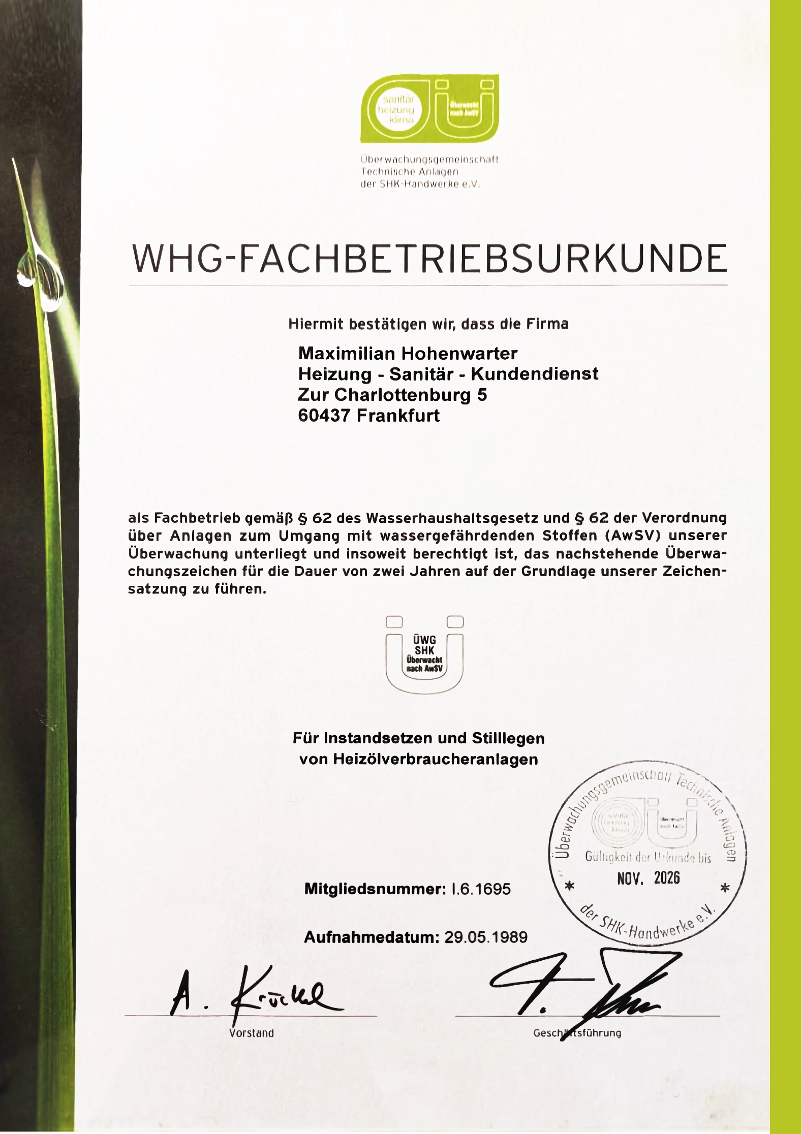 Mit fast 60 Jahren Erfahrung in der Region Frankfurt am Main wissen wir, wie wichtig Vertrauen ist. Unsere Kunden können sich auch künftig auf uns als verlässlichen Ansprechpartner verlassen – mit gutem Service und persönlicher Betreuung.